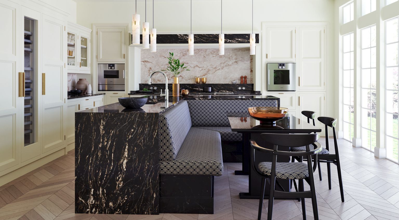 The New Deco kitchen draws inspiration from architects and craftsmen of the 1930’s, whose Art Deco designs featured geometric lines and decorative materials shaped by exceptional craft skills. Whilst acknowledging its 20th Century inspirations, everything about the New Deco kitchen is new, from the “floating” freestanding pieces to the clever shadow-lines in all the cabinetry. Modern framing replaces traditional cornices and doors are either flush or simply framed without beading.